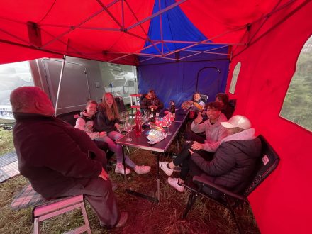 Už jsme všichni stáli na starovním roštu finále, když nám bylo oznámeno, že se čas startu posouvá. Většina z nás vylezla z kartů a šla se podívat do první zatáčky. Při té příležitosti jsme si i s našimi mechaniky udělali brigádu a vysbírali kameny. Asi to byla zajímavá podívaná nejen pro diváky.
